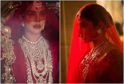 इन तस्वीरों को सब्यसाची ने इंस्टाग्राम पर पोस्ट किया है। यह तस्वीरें प्रियंका चोपड़ा की शादी की है जिसमें वह शादी के लाल जोड़े में दिखाई दे रही हैं। इस तस्वीर में प्रियंका ने लाल रंग का लहंगा पहना हुआ है जिसके साथ हैवी ज्वैलरी पहनी हुई है। दरअसल, प्रियंका चोपडा़ ने शादी में सब्यसाची का लहंगा पहना था वहीं ज्वैलरी सब्यसाची हैरिटेज की थी।