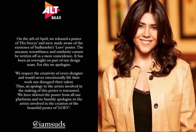 इसके बाद अब ऑल्ट बालाजी ने अपने इंस्टाग्राम पर स्टोरी साझा करते हुए माफी मांग ली है। उन्होंने लिखा, '9 अप्रैल को हमने 'हिज स्टोरी' का पोस्टर रिलीज किया था और तब हमें सुधांशु के 'लोएव' पोस्टर के पहले होने के बारे में पता चला। इस अनुचित तरह से दोबारा बनाना और समानता संयोगवश नहीं हो सकता है. यह हमारी डिजाइन टीम का काम था। इसके लिए हम माफी मांगते हैं।'