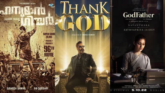 यह साल फिल्मों के लिहाज से काफी मायने रखता है। 2022 में सिनेमाघरों में लगातार बड़े-बड़े स्टार्स की मेगा बजट की फिल्में रिलीज हो रही हैं। सोशल मीडिया पर बायकॉट की उठती मांग और लगातार फ्लॉप होती फिल्मों के बाद भी बॉलीवुड से लेकर साउथ के सुपरस्टार्स अपनी फिल्में रिलीज करने से जरा भी नहीं डर रहे। जहां इन दिनों रणबीर कपूर, आलिया भट्ट स्टारर फिल्म 'ब्रह्मास्त्र' का बज देखा जा रहा है, वहीं आज इसकी चर्चाओं के बीच तीन बड़े स्टार्स की फिल्मों के पोस्टर जारी हुए हैं। हम बात कर रहे हैं अजय देवगन की 'थैंक गॉड', नयनतारा की 'गॉड फादर' और फहाद फासिल की 'टॉप गियर' की। चलिए जानते हैं जारी हुए पोस्टर्स में आपके पसंदीदा सितारें कैसे दिख रहे हैं।