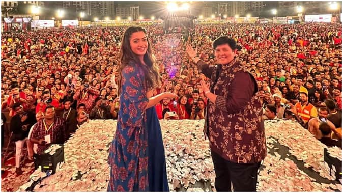 दरअसल, रश्मिका मंदाना अपनी बॉलीवुड डेब्यू फिल्म 'गुडबाय' के प्रमोशन में जुटी हुई हैं। इसी सिलसिले में वह मुंबई में नवरात्रि के मौके पर रखी गई डांडिया नाइट में पहुंचीं, जिसकी तस्वीरें और वीडियो सोशल मीडिया पर तेजी से वायरल हो रही हैं। तस्वीरों में रश्मिका ब्लू कलर के लहंगे में नजर आ रही हैं, तो फाल्गुनी पाठक ब्लैक और गोल्डन आउटफिट पहने हुए हैं। दोनों स्टेज पर मौजूद हैं और पीछे लोगों की भीड़ नजर आ रही है।