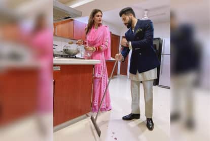 गुरदास मान की बहू ने शेयर की शादी के बाद की पहली तस्वीर, पति से लगवा रहीं पोछा