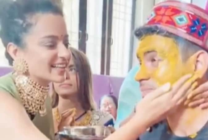 कंगना रणौत के भाई अक्षत की शादी की तैयारियां शुरू, 'बधाई' की रस्म में हल्दी लगाती दिखीं अभिनेत्री