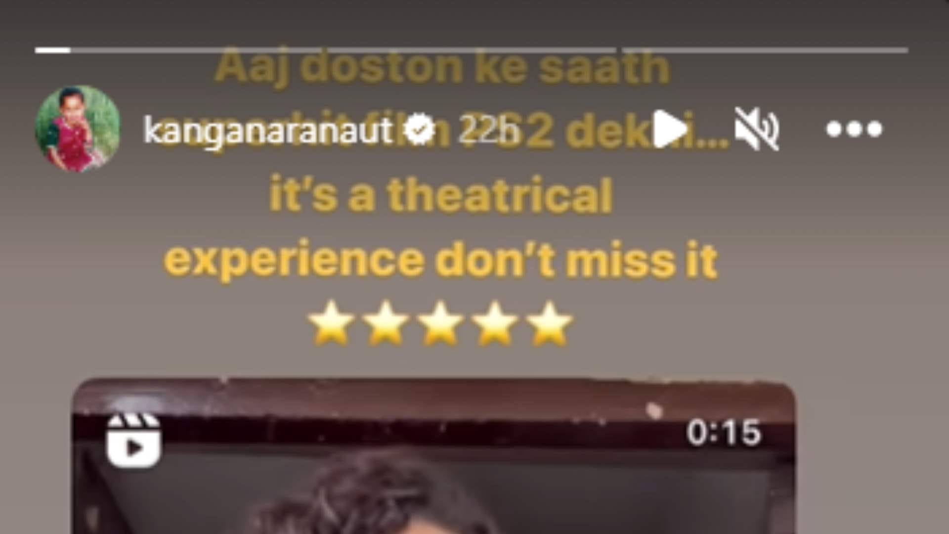कंगना रणौत ने छह मई को मणिरत्नम की मल्टी स्टारर फिल्म 'पोन्नियन सेल्वन 2' देखी। इस मूवी को खत्म करने के बाद एक्ट्रेस थिएटर से बाहर आईं और रिव्यू देने के लिए इंस्टाग्राम स्टोरी का सहारा लिया। कंगना रणौत ने खुद के थिएटर से बाहर निकलने के वीडियो को शेयर करते हुए नोट में लिखा, 'आज दोस्तों के साथ सुपरहिट फिल्म पीएस 2 देखी। यह एक नाटकीय अनुभव है, इसे मिस न करें।'
