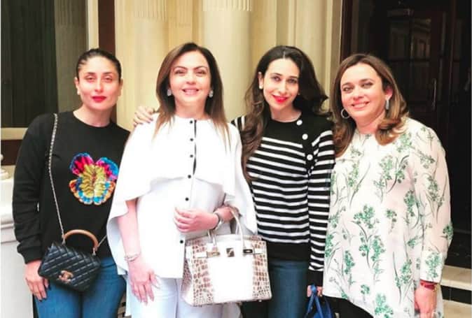 नीता अंबानी से करीना और करिश्मा की मुलाकात लंदन में हुई । फोटो में करिश्मा कपूर ब्लैक एंड व्हाइड स्ट्रिप्ड टॉप और ब्लू डेनिम पहने हुए दिखीं। करीना ने भी ब्लैक टी-शर्ट और ब्लू डेनिम पहना । वहीं नीता अंबानी व्हाइड आउटफिट में नजर आईं । अंबानी परिवार का करीना-करिश्मा के साथ अच्छा बॉन्ड है ।