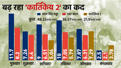 | दिन | लाल सिंह चड्ढा | रक्षा बंधन | कार्तिकेय 2 |