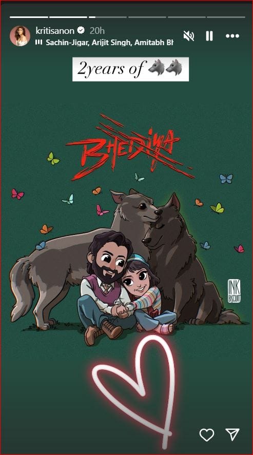 कृति सेनन और वरुण धवन स्टारर भेड़िया सबसे ज्यादा पसंद की जाने वाली फिल्मों में से एक है और इस हॉरर कॉमेडी ने हाल ही में दो साल पूरे किए हैं। कृति ने सोशल मीडिया पर दूसरी सालगिरह का जश्न मनाया। कृति ने अपने इंस्टाग्राम पर एक दिल को छू लेने वाला वीडियो शेयर किया, जिसमें हॉरर-कॉमेडी के सेट की यादों को साझा किया।