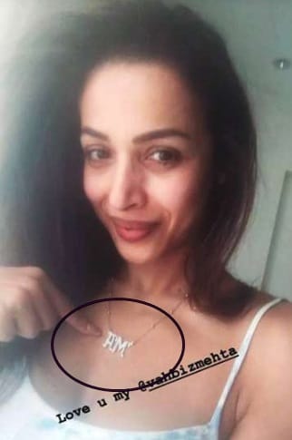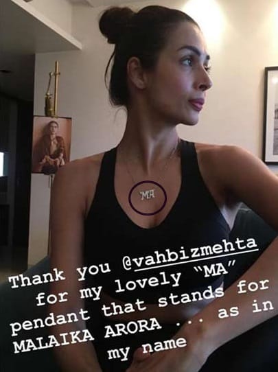 जैसे ही फैंस ने मलाइका के गले में ये पेंडेंट देखा तो सभी ने उसे मलाइका और अर्जुन के नाम से जोड़कर देखा। लोगों ने इसे मलाइका का इजहार-ए-इश्क मान लिया लेकिन मलाइका ने दूसरी स्टोरी शेयर कर अपने फैंस का दिल तोड़ दिया। उन्होंने दूसरी फोटो से बताया कि यह पेंडेंट उनकी फ्रेंड वाहबिज मेहता ने गिफ्ट किया है। जिसका मतलब M A यानी मलाइका अरोड़ा है। अब फैंस को तो M A का मतलब मलाइका और अर्जुन लग रहा था और लगे भी क्यों न पहले वाली तस्वीर में A पहले और M बाद में है लेकिन दूसरी तस्वीर में मलाइका ने M पहले और A बाद में कर लिया है। खैर अब मलाइका ने साफ कर ही दिया है तो क्या कहा जा सकता है।