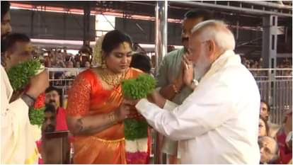 भाजपा नेता गोपी सुरेश की बेटी भाग्य सुरेश और वरण श्रेयस को प्रधानमंत्री ने वरणमाल्यम प्रदान किया। राज्य के दो दिवसीय दौरे पर पीएम मंगलवार शाम कोच्चि पहुंचे। पीएम मोदी ने बुधवार को सुबह त्रिशूर के गुरुवयूर श्री कृष्णस्वामी मंदिर में अभिनेता और भाजपा नेता सुरेश गोपी की बेटी के विवाह समारोह में हिस्सा लिया। पीएम करीब 25 मिनट तक गुरुवायुर मंदिर में दर्शन करने के बाद रुके रहे। इस दौरान प्रधानमंत्री ने विधिवत शादी की परंपरा में हिस्सा लिया।