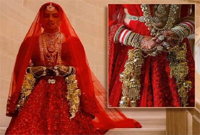 वहीं आपको बता दें कि देसी गर्ल के कलीरों को मृणालिनी चंद्रा ने डिजाइन किया था। आपको बता दें कि, प्रियंका और निक की शादी की ड्रेस भी खास थी। जहां प्रियंका की वेडिंग ड्रेस पर निक जोनस और ऐक्ट्रेस के पेरेन्ट्स का नाम लिखा था, वहीं निक ने भी अपने सूट पर पर 'माई जान' लिखवाया हुआ था।