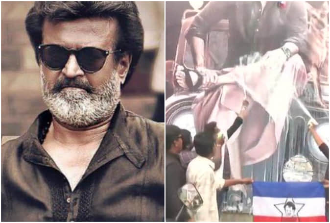 'काला' के लिए काले कपड़ों में दिखा फैंस का जुनून, रजनीकांत का दूध से अभिषेक कर फोड़े पटाखे