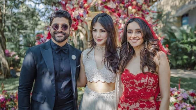 रिया चक्रवर्ती ने ये तस्वीरें अपने ऑफिशियल इंस्टाग्राम अकाउंट पर शेयर की हैं। पहली तस्वीर में रिया, फरहान और शिबानी के साथ दिख रही हैं। इस तस्वीर में तीनों ही एक-साथ काफी प्यारे और सुंदर लग रहे हैं। ये तस्वीर फरहान और शिबानी की क्रिश्चियन रीति-रिवाज की शादी की है।