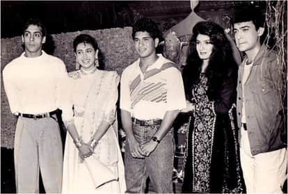 इस तस्वीर को ट्विटर पर फिल्म हिस्ट्री पिक्स अकाउंट से साझा किया गया है। तस्वीर पर कैप्शन में लिखा है- 'सचिन तेंदुलकर आमिर खान, सलमान खान, करिश्मा कपूर और रवीना टंडन के साथ अंदाज अपना अपना फिल्म के मुहूर्त पर।' 'अंदाज अपना अपना' फिल्म साल 1994 में रिलीज हुई थी।