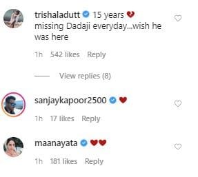 संजय दत्त के इस वीडियो पर उनकी बेटी त्रिशाला दत्त ने कमेंट किया, '15 साल, हर दिन दादा जी को याद करती हूं। काश वो यहां होते।' बता दें कि जब सुनील दत्त का निधन हुआ उस वक्त त्रिशाला काफी छोटी थीं। त्रिशाला संजय दत्त की पहली पत्नी ऋचा शर्मा की बेटी हैं।
