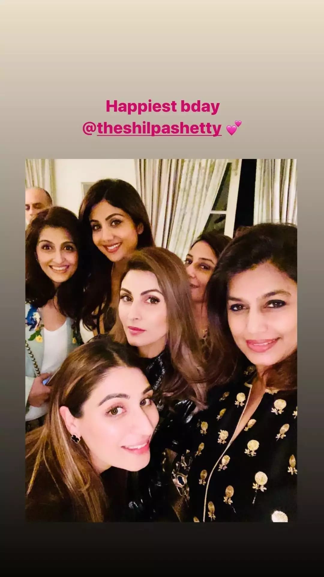 अभिनेता रणबीर कपूर की बहन रिद्धिमा कपूर ने भी शिल्पा शेट्टी को जन्मदिन की बधाई दी है। उन्होंने अपने आधिकारिक इंस्टाग्राम की स्टोरी पर शिल्पा शेट्टी के साथ अपने दोस्तों की तस्वीर साझा कीं। इस तस्वीर के साथ रिद्धिमा ने उन्हें जन्मदिन की बधाई दी। वहीं शिल्पा शेट्टी की बहन और बॉलीवुड अभिनेत्री शमिता शेट्टी ने भी उनके लिए खास पोस्ट लिखकर बधाई दी है।