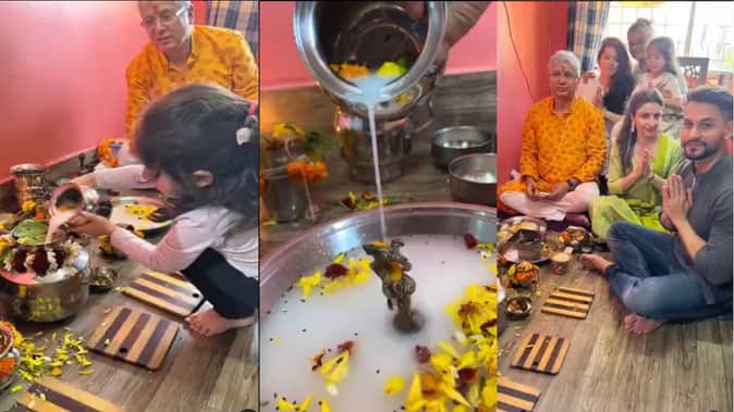 कुणाल खेमू ने सभी को हेराथ पर्व और शिवरात्रि की शुभकामनाएं देते हुए लिखा, हेराथ मुबारक, सभी को महाशिवरात्रि की शुभकामनाएं, सभी के लिए शांति, खुशी, प्रेम और प्रकाश की कामना, ऊं नमः शिवाय! वीडियो और तस्वीरों में देखा जा सकता है कि सोहा अली खान और कुणाल अपने घर में जमीन पर बैठकर पूजा करते नजर आ रहे हैं। इस दौरान बेटी इनाया भी पूजा कर रही हैं। पूजा के दौरान वह कलश में दूध डालती नजर आ रही हैं। पूजा में कुणाल खेमू भी शंख बजाते नजर आए। इसके बाद पूरे परिवार ने दुग्धाभिषेक कर पंडित जी संग भगवान की आरती की।