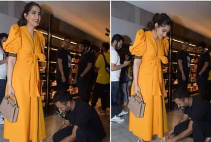 सोनम कपूर के पति आनंद ने जमीन पर बैठ बांधे पत्नी के जूते के फीते