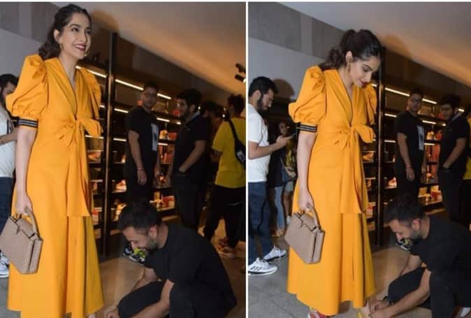 इस दौरान दोनों की स्पेशल बॉन्डिंग देखने को मिली । ईवेंट में सोनम मस्टर्ड येलो कलर की ड्रेस और मैचिंग जूते पहने नजर आईं । हाई पोनी, रेड लिपस्टिक और हैंडबैग उनके लुक को कॉम्प्लीमेंट कर रहा था । वहीं आनंद ब्लैक ट्राउजर-टीशर्ट में दिखे । ईवेंट में सोनम के जूते के फीते खुल गए ।