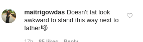 एक यूजर ने कमेंट किया- 'अपने पिता के साथ खड़े होते हुए क्या उसे बिल्कुल भी झिझक नहीं महसूस हो रही है?'