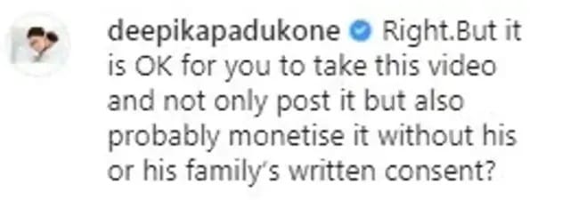 विरल भियानी सुशांत सिंह राजपूत के शव के वीडियो के पोस्ट में लिखा था, 'मेरे द्वारा ली गईं और पोस्ट की गई फोटो और वीडियो को मेरी अनुमति के बिना कई भी इस्तेमाल न करें।' इस पोस्ट पर दीपिका पादुकोण ने अपना गुस्सा जाहिर करते हुए लिखा था, 'ठीक है, लेकिन क्या यह सही है कि आपने यह वीडियो लिया। इसे पोस्ट भी किया, वह भी सुशांत के परिवार की अनुमति के बिना।' दीपिका पादुकोण के इस कमेंट पर अब फोटो जर्नलिस्ट ने अपनी प्रतिक्रिया दी है।