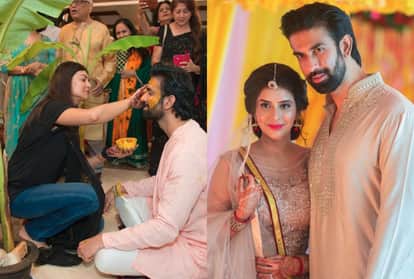 हल्दी सेरेमनी के दौरान राजीव रस्में निभाते हुए। इस दौरान राजीव की मां उन्हें हल्दी लगा रही हैं। वहीं परिवार के बाकी सदस्यों को भी आस-पास देखा जा सकता है।