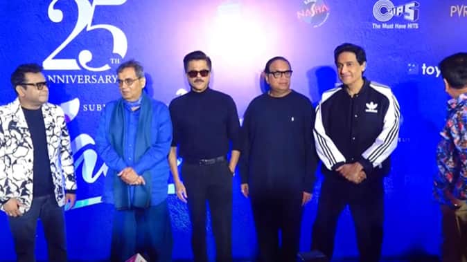 फिल्म 'ताल' 13 अगस्त 1999 को रिलीज हुई थी और इस साल अगस्त में इसकी रिलीज को 25 साल पूरे हुए हैं। 'ताल' की 25वीं वर्षगांठ में ए. आर. रहमान का जलवा देखने को मिला। उन्होंने ब्लैक आउटफिट के ऊपर व्हाइट और ब्लैक ब्लेजर पहन रखा था। इसके साथ ही वह टीम के साथ पैपराजी के कैमरों के लिए पोज देते देखे गए। 'ताल' की स्क्रीनिंग में कुमार तौरानी भी नजर आए।