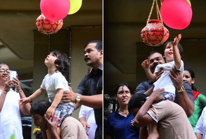 तैमूर ने जन्माष्टमी पर इस तरह फोड़ी दही-हांडी, भाई को देख ऐसा था बहन इनाया का रिएक्शन