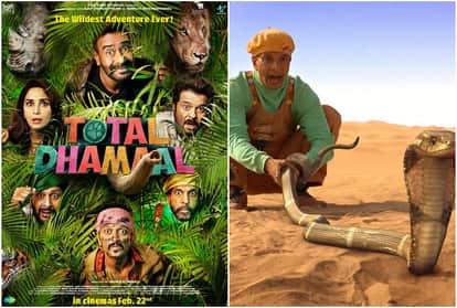 इससे पहले फिल्म के काफी फनी पोस्टर्स शेयर कि गए थे। एक फोटो में जहां अजय शेर के साथ रैंप वॉक करते नजर आए थे। तो वहीं अरशद वारसी फन खोलकर बैठे सांप के सामने डरते नजर आ रहे थे। 'टोटल धमाल' धमाल सीरीज की तीसरी कड़ी है। फिल्म की कहानी का ताना बाना जंगल के इर्द गिर्द बुना गया है।