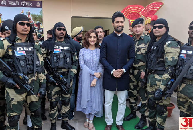 उरी: द सर्जिकल स्ट्राइक के मुख्य कलाकार विक्की कौशल और यामी गौतम सहित सुई धागा के स्टार वरुण धवन ने इस साल गणतंत्र दिवस के अवसर पर अटारी-वाघा सीमा का दौरा किया। इस दौरान तीनों कलाकार देशभक्ति के रंग में रंगे हुए नज़र आये और अटारी-वाघा सीमा पर अपने दमदार परफॉर्मेंस से चार चाँद लगा दिए थे।