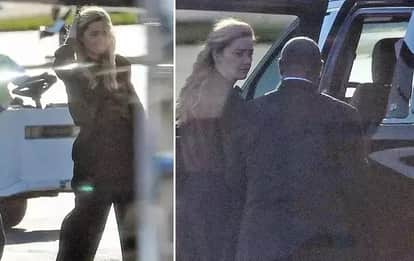 हॉलीवुड एक्ट्रेस एम्बर हर्ड को उनके पूर्व पति और अभिनेता जॉनी डेप के खिलाफ मानहानि के मुकदमे में फैसला सुनाए जाने के बाद पहली बार देखा गया। उन्हें शुक्रवार को वाशिंगटन डीसी के एक हवाई अड्डे पर निजी प्लेन से बाहर निकलते और लग्जरी एसयूवी में जाते हुए पैपराजी ने क्लिक किया। मीडिया रिपोर्ट्स के अनुसार एम्बर के साथ चार अन्य लोग भी मौजूद थे। यात्रा के दौरान एक्ट्रेस ने हरे रंग की शर्ट, काली पेंट पहनी थी, साथ ही उन्होंने जैकेट भी कैरी किया था। जानकारी के अनुसार एक्ट्रेस अपनी वर्क मीटिंग के लिए न्यूयॉर्क शहर में थीं। रिपोर्ट में आगे कहा गया है कि उन्होंने न्यू जर्सी से वाशिंगटन डीसी के लिए उड़ान भरी और बाद में वापस वर्जीनिया में अपने घर लौट आईं।