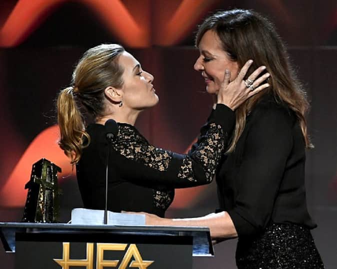 KATE WINSLET AND ALLISON JANNEY KISSING AT THE HOLLYWOOD FILM AWARDS TONIGHT YALL I AM FINE EVERYTHING IS FINE pic.twitter.com/T6AWDUP4Iw