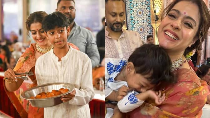 Kajol: दुर्गा पूजा पंडाल में बेटे युग के साथ प्रसाद बांटती दिखीं काजोल, भक्तों को खाना परोसते भी आईं नजर
