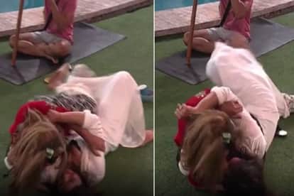 इस दौरान राखी सावंत ने अर्शी खान को जमीन पर गिराकर मारना शुरू कर दिया। वहीं अर्शी खान ने राखी सावंत के बाल नोचने शुरू कर दिए। इससे पहले राखी सावंत ने टास्क के दौरान अर्शी खान को चप्पल से मारने की धमकी दी थी। टास्क में राखी ने अर्शी खान की टीम से वॉशरूम जाने की इजाजत मांगी, लेकिन उन्होंने मना कर दिया।