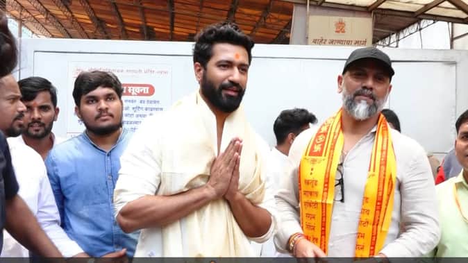 अभिनेता विक्की कौशल जल्द ही आगामी फिल्म 'छावा' में छत्रपति शिवाजी के बेटे छत्रपति संभाजी महाराज के रूप में नजर आएंगे। फिल्म का टीजर हाल ही में रिलीज किया गया था और इसने फिल्म को लेकर काफी उत्सुकता पैदा कर दी है। फर्स्ट लुक रिलीज से पहले विक्की कौशल अपनी आगामी फिल्म के लिए आशीर्वाद लेने सिद्धिविनायक मंदिर गए, जिसकी तस्वीरें सामने आ चुकी हैं।