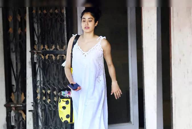 अपने लेटेस्ट जिम लुक के लिए जाह्नवी ने व्हाइट कलर की लेसी मेक्सी ड्रेस पहनी है। इसके साथ उन्होंने अपना फेवरेट यैलो स्लिंग बैग कैरी किया हुआ है। हेयरस्टाइल में उन्होंने बन बनाया हुआ है।