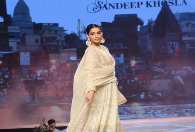 शादी के बाद पहली बार सिंदूर लगाकर नजर आईं सोनम कपूर, रैंप वॉक करते हुए बोलीं 'घर मोरे परदेसिया'