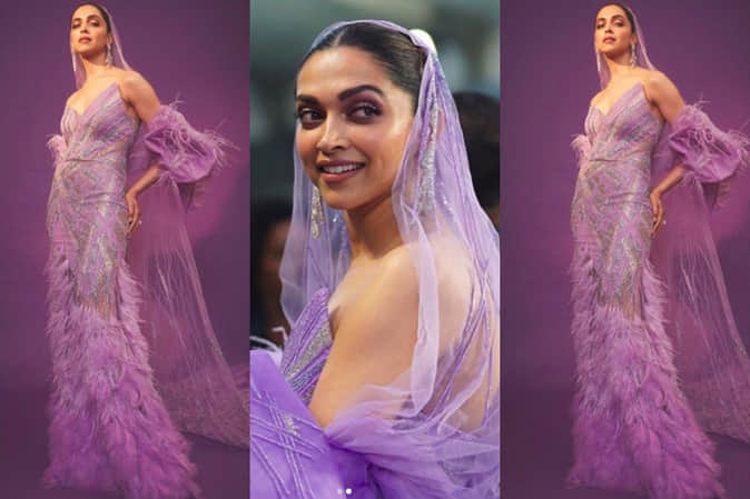 दीपिका ने लैवेंडर और पर्पल ह्यू रंग के लुक के साथ बेहद लाइट और डिसेंट मेकअप किया है। स्टेटमेंट आईब्रोज और न्यूड लिप्स लुक के साथ जम रहे हैं।