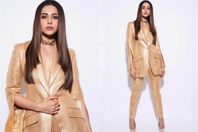 ग्रीन कारपेट पर 'गोल्डन गर्ल' बनकर बिना शर्ट पहने पहुंची रकुल प्रीत, यूजर्स बोले 'कौन है डिजाइनर'