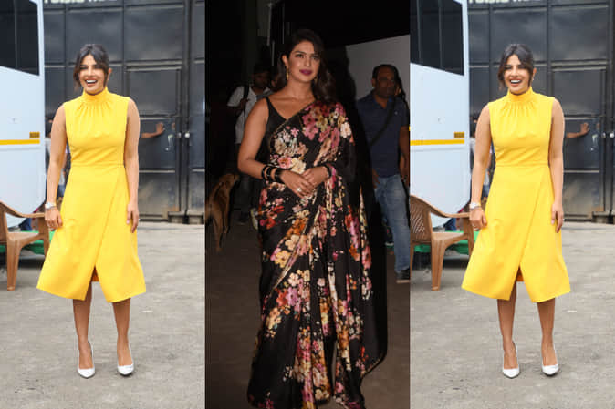 अपने 'फैशन इवॉल्यूशन' की वजह से खासतौर पर चर्चा में बनी रहने वाली देसी गर्ल प्रियंका चोपड़ा अपनी आने वाली फिल्म 'स्काई इस पिंक' के प्रमोशन के लिए भारत पहुंच चुकी हैं। फैशन डीवा फिल्म को प्रमोट करने के लिए टीवी शो के सेट पर पहुंचीं। इस मौके पर प्रियंका जोनस को दो लुक में स्पॉट किया गया। वेस्टर्न और इंडियन दोनों लुक में पीसी सिंपल और सोबर लग रही थीं।