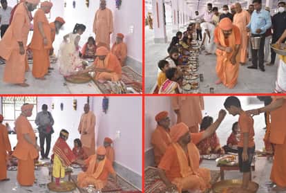 मुख्यमंत्री योगी आदित्यनाथ ने शारदीय नवरात्र की नवमी तिथि गुरुवार को गोरखनाथ मंदिर स्थित भवन में विधि-विधान के साथ परंपरागत कन्या पूजन किया। उन्होंने मां भगवती के नौ स्वरूपों की प्रतीक नौ कन्याओं, एक बटुक भैरव के पांव पखारकर पहले पूजा-अर्चना की, उसके बाद अपने हाथों से भोजन कराकर दक्षिणा के साथ उनकी विदाई की। इस दौरान मंदिर में पहुंची अन्य कन्याओं को भी उसी श्रद्धाभाव से भोजन कराया गया और विदाई की गई। इस अवसर पर मुख्यमंत्री ने कहा कि मातृशक्ति की आराधना हमारे देश की संस्कृति है। इसीलिए नवरात्र के नवें दिन कन्या पूजन का विधान है।