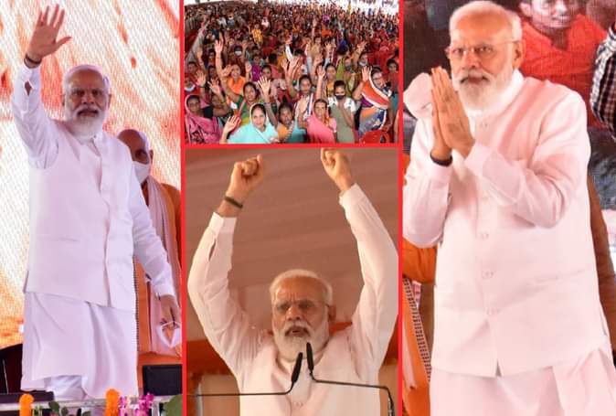प्रधानमंत्री मोदी के तेवर बुधवार को बदले दिखे। वह दाढ़ी छोटी कराके कुशीनगर आए थे। चार घंटे का कार्यक्रम था, लेकिन उससे ज्यादा समय तक रुके। बरहवा फार्म हाउस परिसर में आयोजित जनसभा में करीब 32 मिनट तक बोले। मोदी-योगी सरकार की उपलब्धियां गिनाईं और विपक्ष की नाकामियों को गिनाकर दोबारा जनसमर्थन की अपील की।