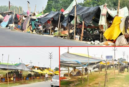 उत्तर प्रदेश के गोरखपुर जिले में बाढ़ के बीच प्लास्टिक के एक ही टुकड़े में इंसान और मवेशी छिप रहे हैं। एक तरफ राप्ती और दूसरी तरफ रोहिन नदी से घिरे सदर ब्लॉक के कोलिया उत्तरी गांव के लोगों का जीवन इस वक्त बेहद कष्टों से गुजर रहा है। गांव के अधिकांश घरों में बाढ़ का पानी भरा है लिहाजा लोग जरूरी सामान समेत बांध पर शरण लिए हुए हैं। यहां किसी तरह जुगाड़ से प्लास्टिक तानकर सामान समेत खुद को तो छिपाए ही हैं, अपने गाय-भैंसों को भी उसमें ही शरण दी है। हालांकि करीब 15 दिनों से यहां रह रहे लोगों को इस बात का संतोष है कि सरकार ने राशन व दो लीटर मिट्टी का तेल दे दिया है, जिससे वक्त कट जा रहा है। अगस्त के अंतिम सप्ताह में राप्ती और रोहिन नदियों का जलस्तर खतरे के निशान से ऊपर चला गया था। इसके चलते नदी क्षेत्र के अगल-बगल के गांवों में जलभराव हो गया।