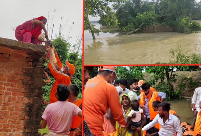 बच्चों और मवेशियों को संभालकर गांव में ही ऊंचे स्थानों पर बने घरों में शरण लेने भर में कई के घरों में चार से पांच फीट का पानी लग गया तो कई की झोपड़ी टूट गई। कुछ अपनी ही छत पर जाकर शरण लिए जिन्हें दोपहर बाद बचावकर्मियों ने सुरक्षित बाहर निकाला।