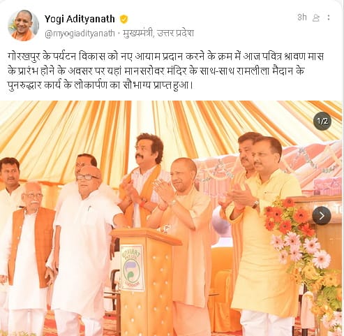 बता दें कि मुख्यमंत्री योगी ने पहले मानसरोवर मंदिर और मानसरोवर रामलीला मैदान में पर्यटन विकास एवं जीर्णोद्धार कार्यक्रम का लोकार्पण व शिलान्यास किया। इस दौरान सांसद रवि किशन शुक्ला, मेयर सीताराम जायसवाल, विधायक विपिन सिंह, पुष्पदंत जैन व अन्य लोग मौजूद रहे।
