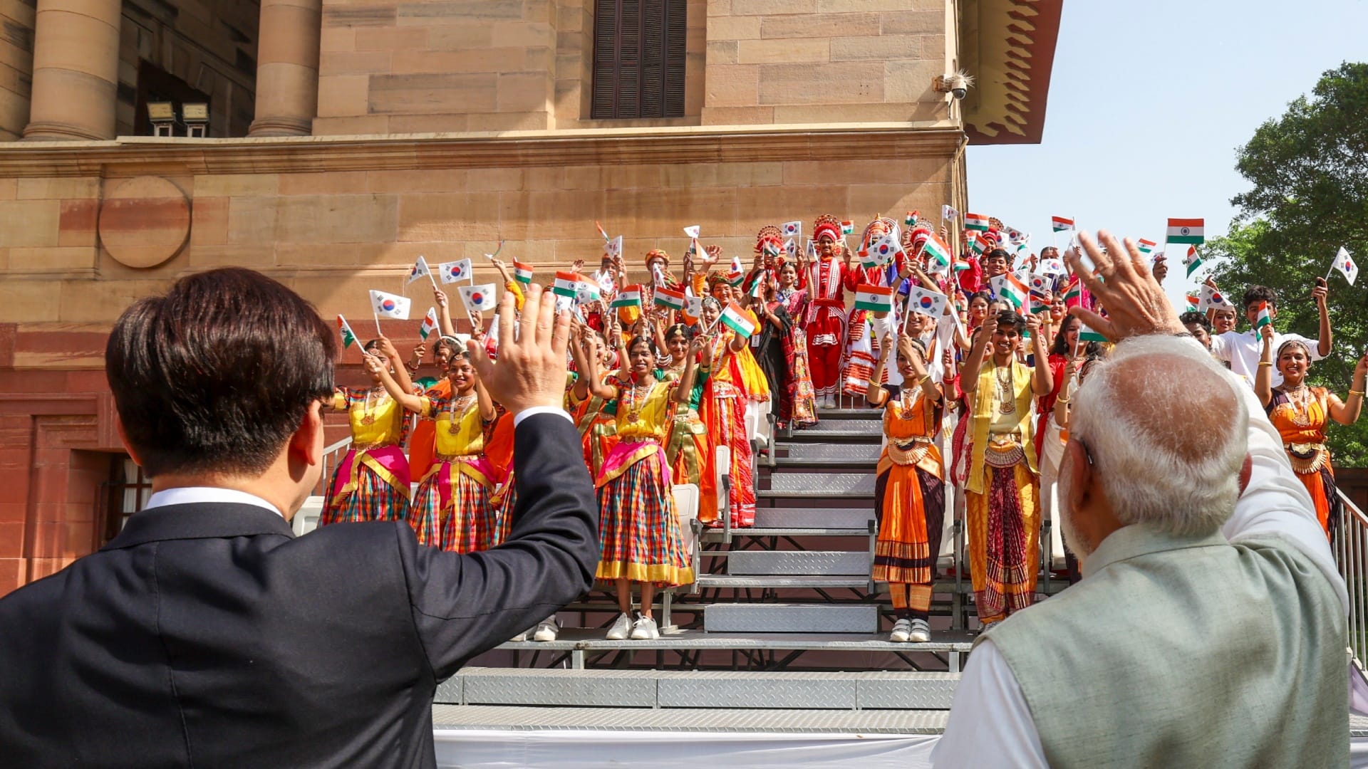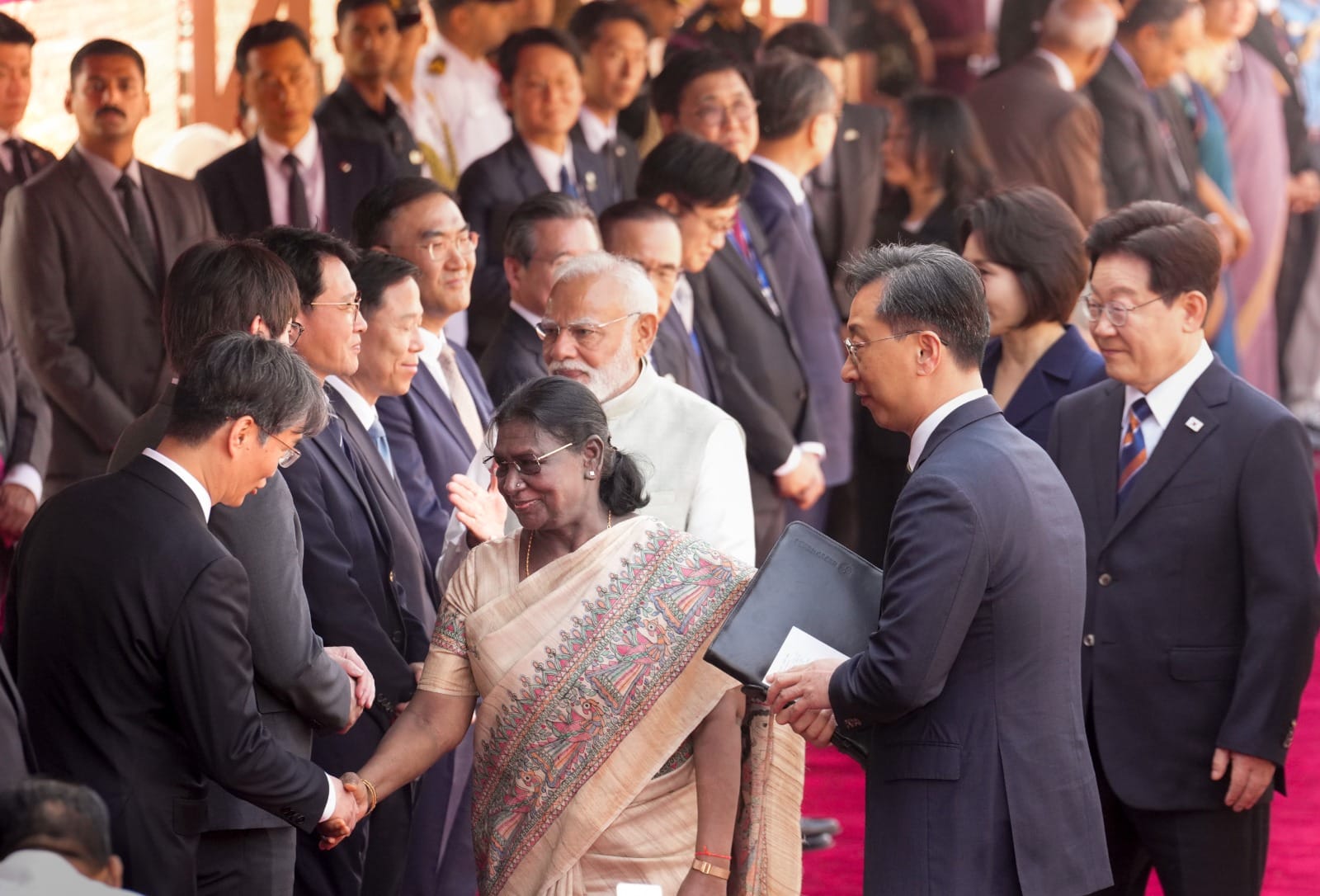 भारत में कोरिया के राजकीय मेहमानों का भव्य स्वागत: तस्वीरों में दिखी देश की संस्कृति; PM-राष्ट्रपति रहे मौजूद