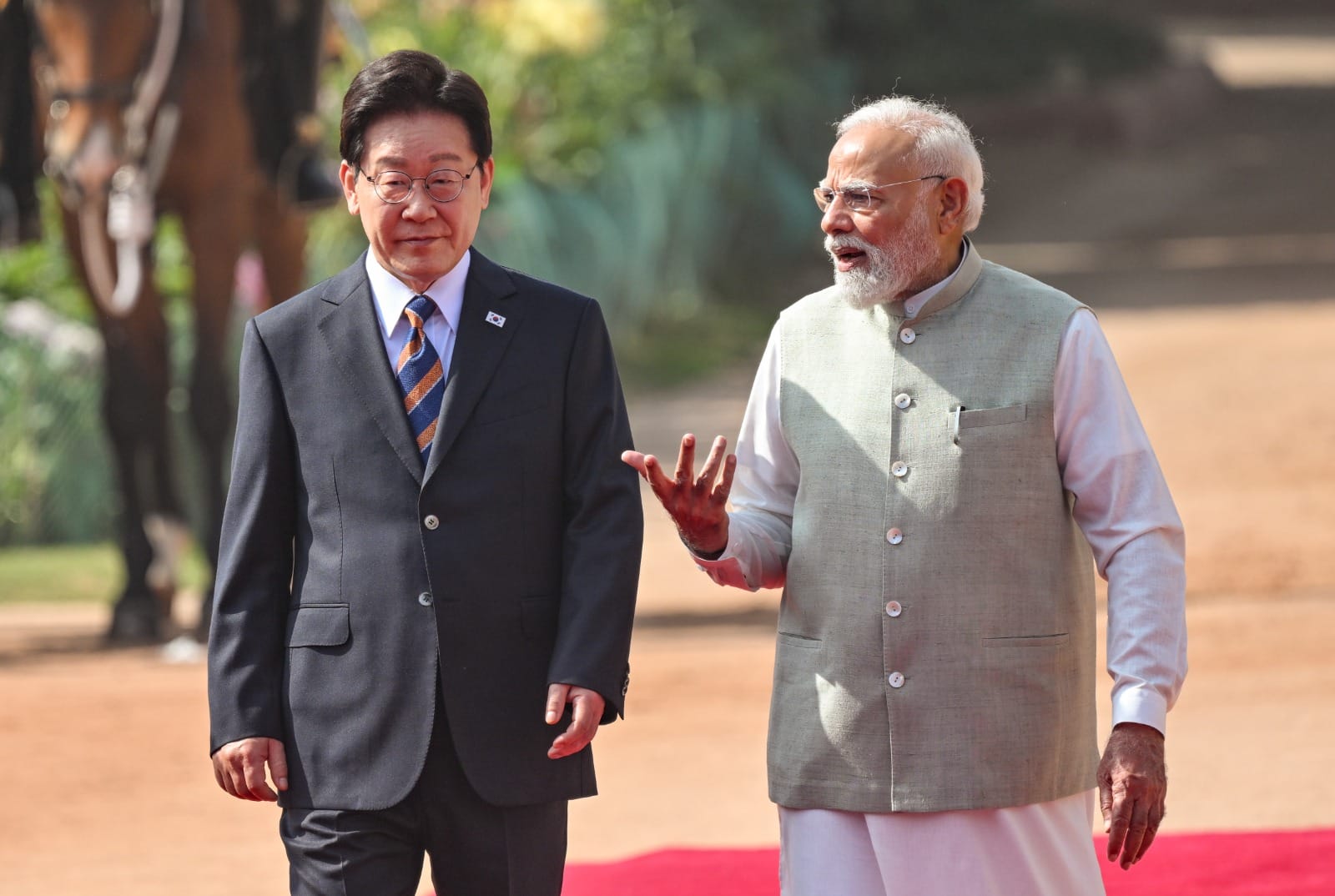 भारत दौरे पर आए दक्षिण कोरिया के राष्ट्रपति ली जे म्यूंग का राजधानी दिल्ली में भव्य स्वागत किया गया। इस दौरान देश की संस्कृति की झलक भी देखने को मिली। राष्ट्रपति ली अपनी पत्नी किम ही क्यूंग के साथ तीन दिवसीय यात्रा पर भारत पहुंचे हैं।