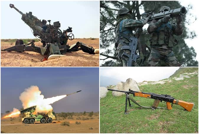 भारत अपने सशस्त्र बल को मजबूत करने पर ज्यादा जोर देता है। पाकिस्तान और चीन जैसे पड़ोसी देशों की ओर से बढ़ रहे लगातार तनाव को लेकर भारतीय सशस्त्र बल ज्यादा सतर्क है। आइए जानते हैं कि अपनी सुरक्षा के लिए भारत के पास कौन-कौन सी मिसाइलें, जहाज, पनडुब्बियां और बंदूकें हैं।