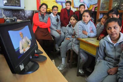 10वीं और 12वीं की बोर्ड परीक्षा शुरू होने से पहले प्रधानमंत्री नरेंद्र मोदी ने परीक्षार्थियों को सफलता और आत्मविश्वास बढ़ाने के टिप्स दिए। नई दिल्ली के तालकटोरा स्टेडियम में आयोजित विशेष कार्यक्रम 'परीक्षा पर चर्चा' में पीएम मोदी ने स्कूली बच्चों को संबोधित करते हुए कहा कि परीक्षा के समय छात्र-छात्राओं को काफी दबाव का सामना करना पड़ता है। अपने संबोधन में प्रधानमंत्री ने कहा, 'जब मैंने स्वच्छ भारत की बात की तो सबसे ज्यादा बच्चों ने उसमें हिस्सा लिया था।' बच्चों द्वारा आत्म विश्वास की कमी के सवाल पर पीएम ने कहा कि, 'यदि आपके अंदर आत्मविश्वास नहीं है तो सब याद होते हुए भी आपको वह शब्द याद नहीं आता है जो आपने पढ़ा होता है।' इस दौरान स्कूलों में भी पीएम मोदी के भाषण को सुनाया गया। यह तस्वीर शिमला के एक स्कूल की है। जहां बच्चे बहुत ही ध्यान से पीएम मोदी को सुन रहे हैं।