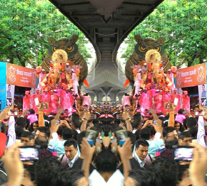 भक्त अपने भगवान के विसर्जन का पल अपने फोन और कैमरों में कैद करना चाहते हैं।