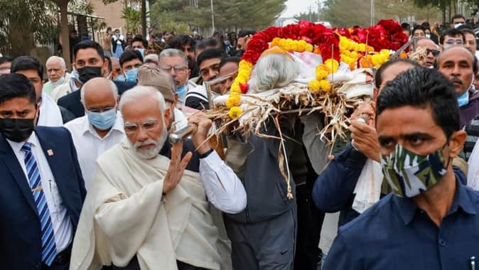अलविदा हीराबेन: मां को कंधा देते वक्त भावुक दिखे प्रधानमंत्री मोदी, तस्वीरों में देखें हीराबा की अंतिम यात्रा