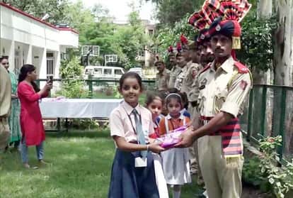 छात्राओं ने जवानों की कलाई पर बांधी राखी